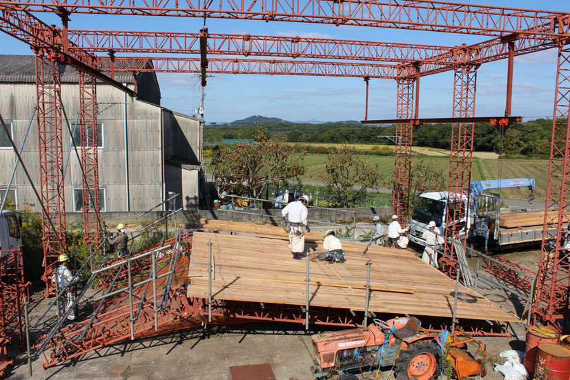 高所作業に必要な高さを確保しながら、工程の進行に合わせてスムーズに位置を変更できることが大きな特長です。